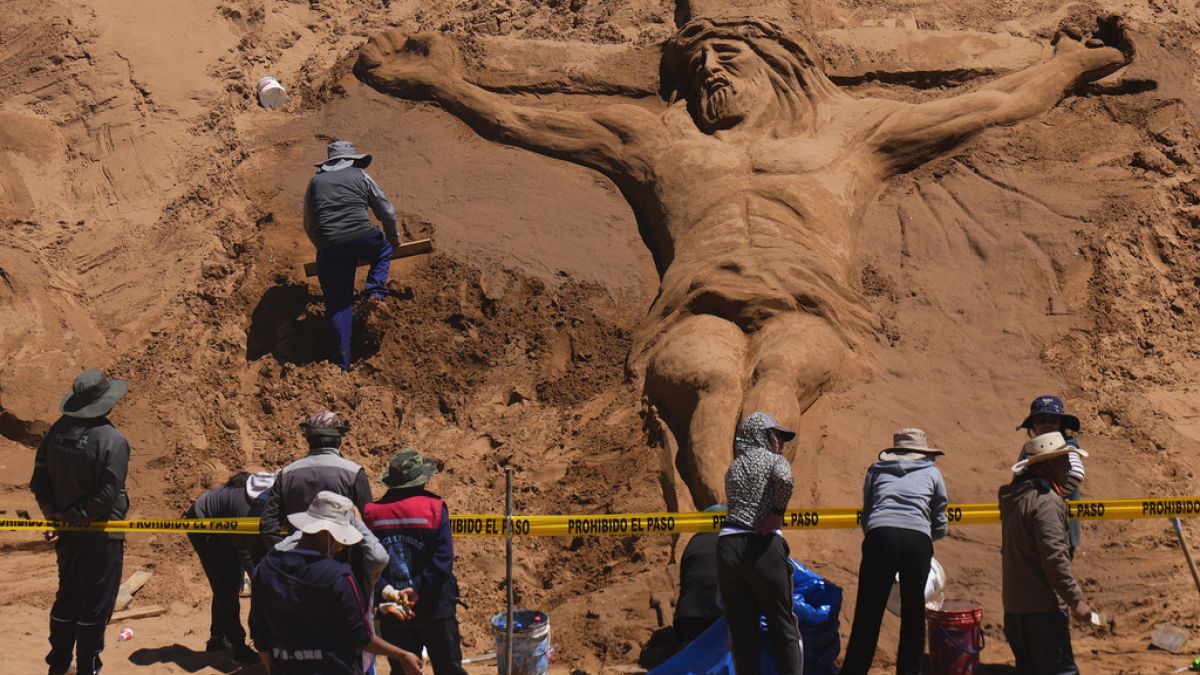 اجتمع فنانون من بوليفيا والأرجنتين في منطقة صحراوية بجبال الأنديز البوليفية لإعادة إحياء آلام المسيح وصور من العهد القديم للكتاب المقدس يوم الجمعة.