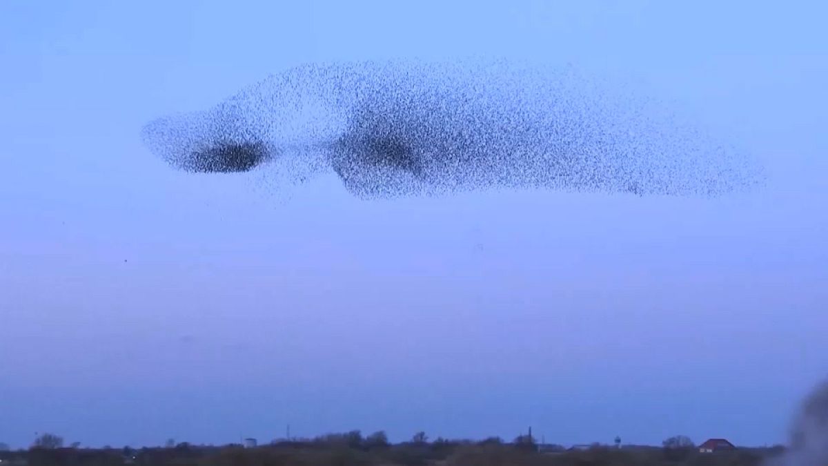 فيديو. في عرض طبيعي خلاب.. أسراب الزرزور ترسم “الشمس السوداء” على الحدود الدنماركية الألمانية
