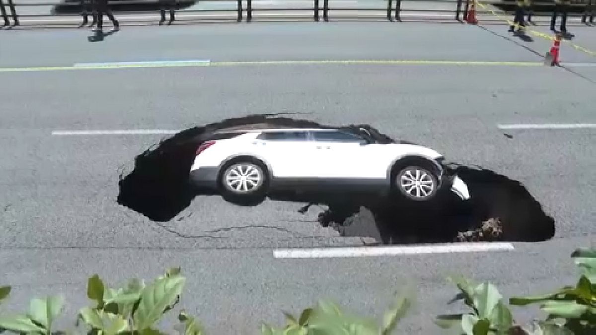 وقد أظهرت مقاطع الفيديو من الموقع سيارة SUV بيضاء تنغمر في حفرة بعمق 2.5 متر ظهرت في شارع وسط سيول.