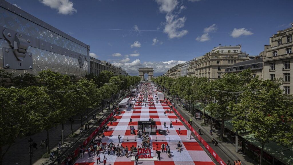 في حدث فريد من نوعه، تحول  شارع الشانزليزيه، أحد أشهر شوارع العالم، والذي عادة ما يكون مزدحمًا بالسيارات والمارة، إلى سجادة عملاقة للجلوس والتنزه وتناول وجبة من الطعام في أجواء استذنائية.