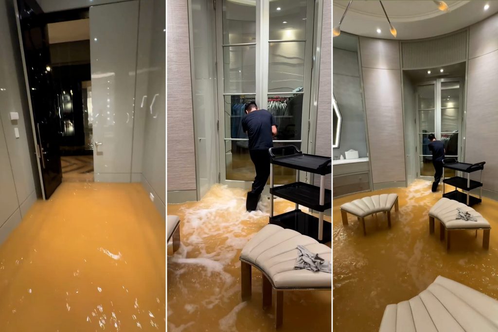 وفي المقطع، يظهر شخص مجهول يرتدي ملابس سوداء بالكامل وهو يحاول إغلاق الأبواب بينما تندفع مياه الفيضانات الموحلة وتبدأ في التراكم في جميع أنحاء غرف المنزل الذي يوجدون فيه.