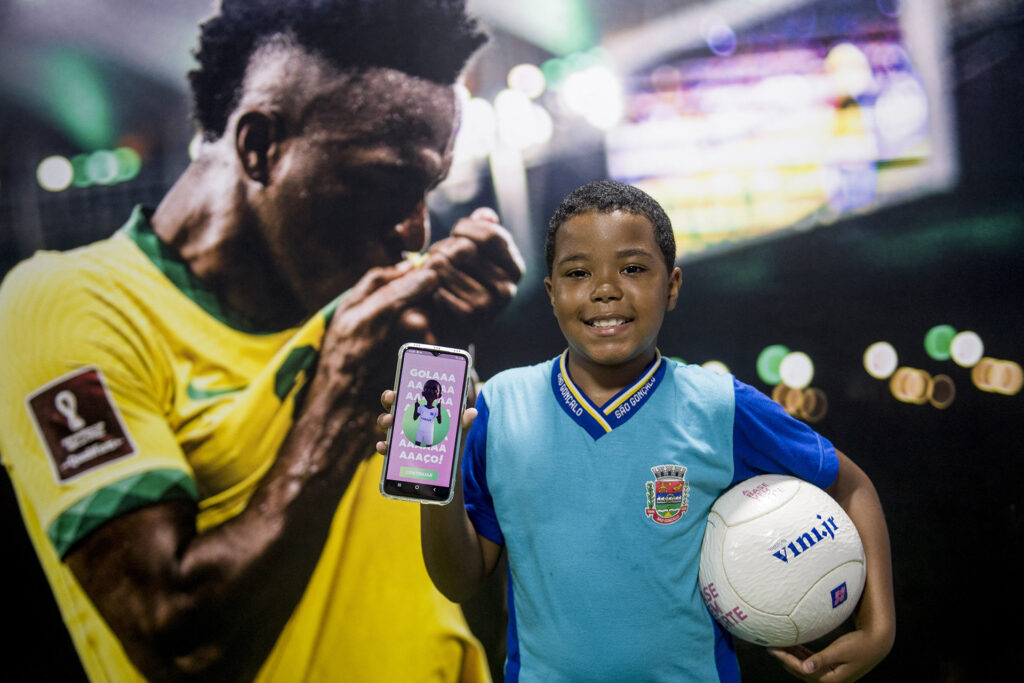 في مدرسة ابتدائية بالبرازيل يُحفّز التلاميذ على الدروس الأكاديمية في صفوف تشبه ملاعب كرة القدم، مع صورة افتراضية للنجم الدولي فينيسيوس جونيور الذي يهتف مع كل إجابة صحيحة.