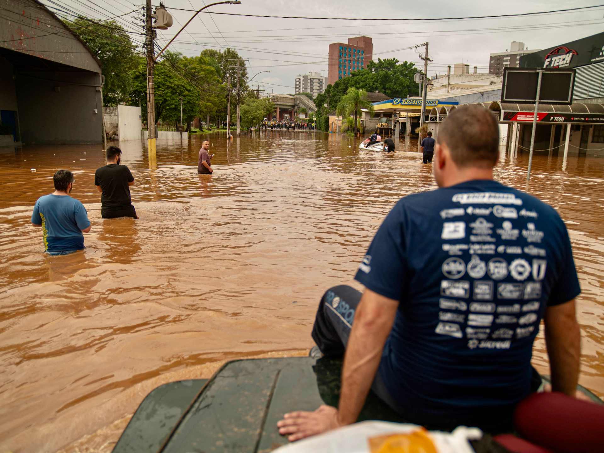 وفي بورتو أليغري، عاصمة الولاية، فاضت المياه على ضفتي نهر جوايبا مما أدى إلى غمر الشوارع بالمياه.