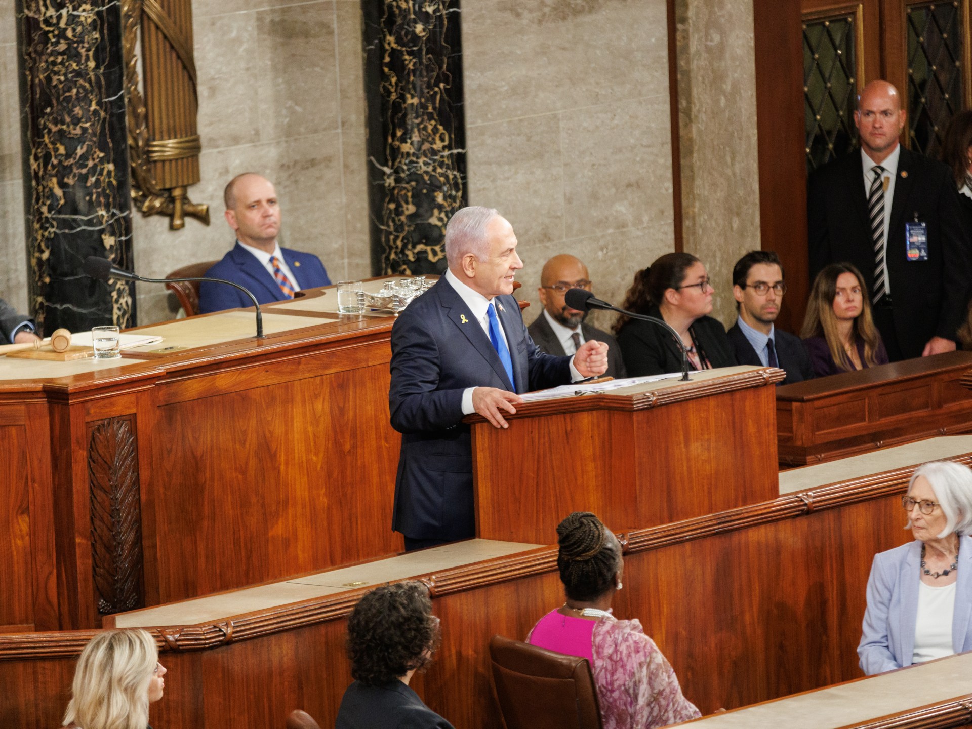 لم يضيع رئيس الوزراء الإسرائيلي بنيامين نتنياهو وقته في الحديث أمام مجلسي الكونغرس عن غير الحرب والسلاح والدم، وتقديم صورة مؤلمة عما يصفه بالأهوال التي تعرضت لها إسرائيل فجر السابع من أكتوبر/تشرين الأول 2023.
