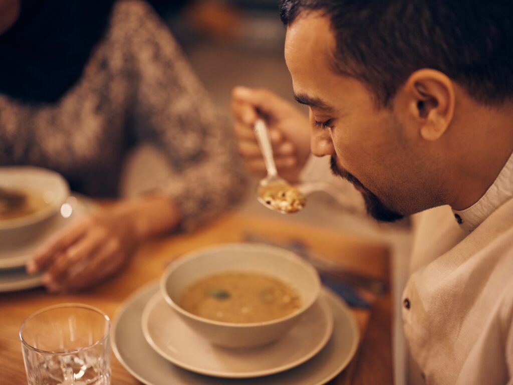 وإذا كنت تستمتع بتناول الحساء وترغب في الاستفادة من مزايا دمجه في نظامك الغذائي، جرب إعداد وصفاتك الخاصة في المنزل إلى جانب الوجبات المغذية الأخرى، مع العلم أن النظام الغذائي المتوازن مع النشاط البدني المنتظم يمكن أن يساعدك في الوصول إلى وزن مناسب بصحة جيدة، دون الشعور أبدا باضطرابات ما بعد الأكل الشائعة، مثل الثقل والتخمة والتعب.