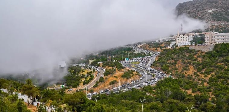 اعتادَت منطقةُ الباحة أن تلتحف الضباب ويعانق جبالها السحاب في موسم الصيف، وتزهو بمناظر الضباب والسحاب، الذي يشكَّل لوحةً جماليةً إبداعيةً، تصاحبها قطرات المطر على غابات وطرقات سراة المنطقة في مشهد رباني بديع أخاذ عادة ما تكتسيه المنطقة خلال موسم الصيف.