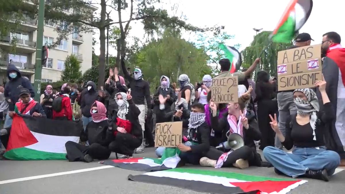 مئات المحتجين يتظاهرون أمام السفارة الإسرائيلية في بروكسل تنديدا بالهجوم على غزة