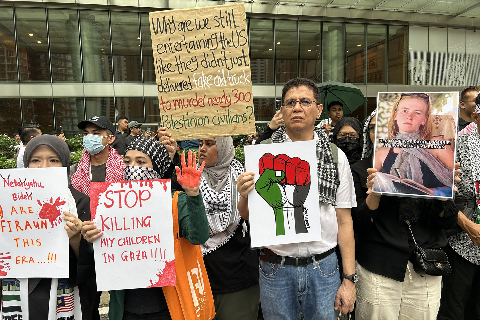 كوالالمبور- استغل نشطاء مؤيدون للقضية الفلسطينية حفلا أقامته السفارة الأميركية في كوالا لمبور، يوم الاثنين 10 يونيو/حزيران الجاري، بمناسبة ذكرى الاستقلال الأميركي، لإعلان رفضهم خصخصة خدمات المطارات الماليزية.