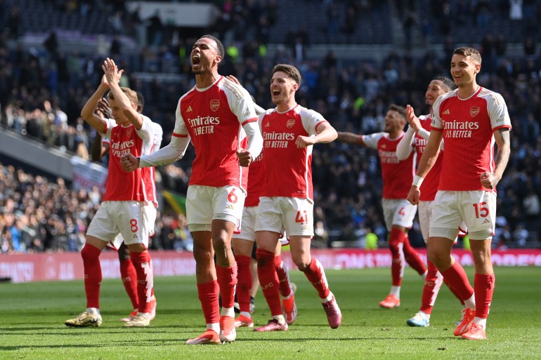 سجل أرسنال 3 أهداف خلال الشوط الأول، وتراجع في الثاني، قبل أن يفوز 3-2 على مضيفه توتنهام في مباراة مثيرة، اليوم الأحد، ليواصل سعيه للتتويج بأول لقب له في الدوري الإنجليزي الممتاز لكرة القدم خلال 20 عاما، في صراع بات ثنائيا إلى حد كبير مع مانشستر سيتي بعدما تراجعت آمال ليفربول.