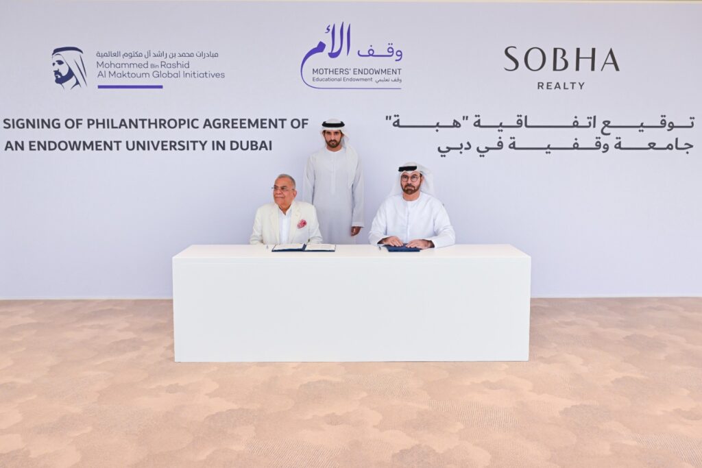 بحضور سمو الشيخ حمدان بن محمد بن راشد آل مكتوم، ولي عهد دبي نائب رئيس مجلس الأمناء لمؤسسة مبادرات محمد بن راشد آل مكتوم العالمية، وسمو الشيخ مكتوم بن محمد بن راشد آل مكتوم، النائب الأول لحاكم دبي نائب رئيس مجلس الوزراء وزير المالية، وقّعت مؤسسة “مبادرات محمد بن راشد آل مكتوم العالمية” ومجموعة شوبا العقارية اتفاقية هبة لإنشاء جامعة وقفية في دبي، ضمن حملة “وقف الأم” التي أطلقها صاحب السمو الشيخ محمد بن راشد آل مكتوم، نائب رئيس الدولة رئيس مجلس الوزراء حاكم دبي، رعاه الله، لتكريم الأمهات بإنشاء صندوق وقفي بقيمة مليار درهم لدعم تعليم ملايين الأفراد حول العالم.