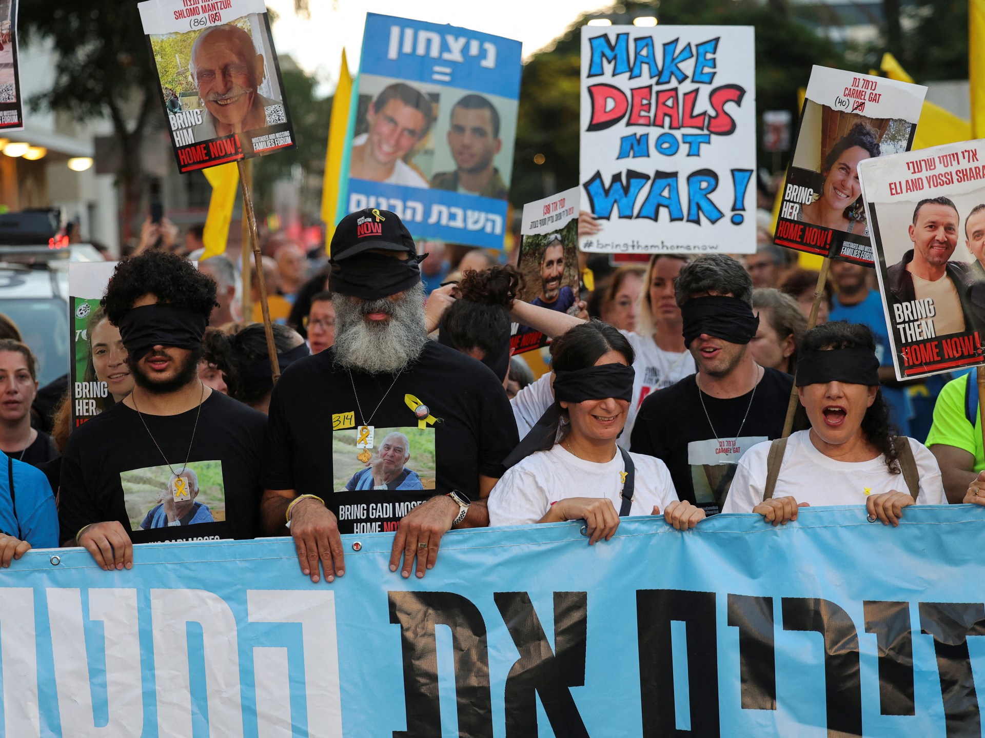 وقال المراسل إن المتظاهرين انطلقوا في مسيرة نحو وزارة الدفاع للمطالبة بعقد صفقة تبادل.
