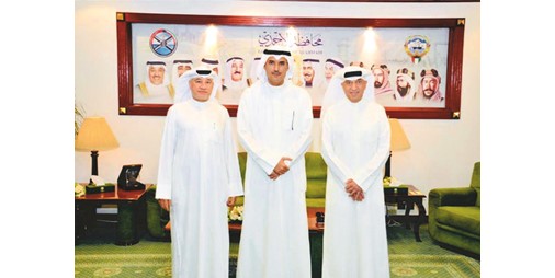 استقبل محافظ الأحمدي الشيخ حمود جابر الأحمد بمكتبه في ديوان عام المحافظة صباح أمس نائب المدير العام لقطاع الرياضة للجميع بالهيئة العامة للرياضة حامد علي الهزيم ومدير إدارة التوعية العامة بالهيئة وليد سلطان.