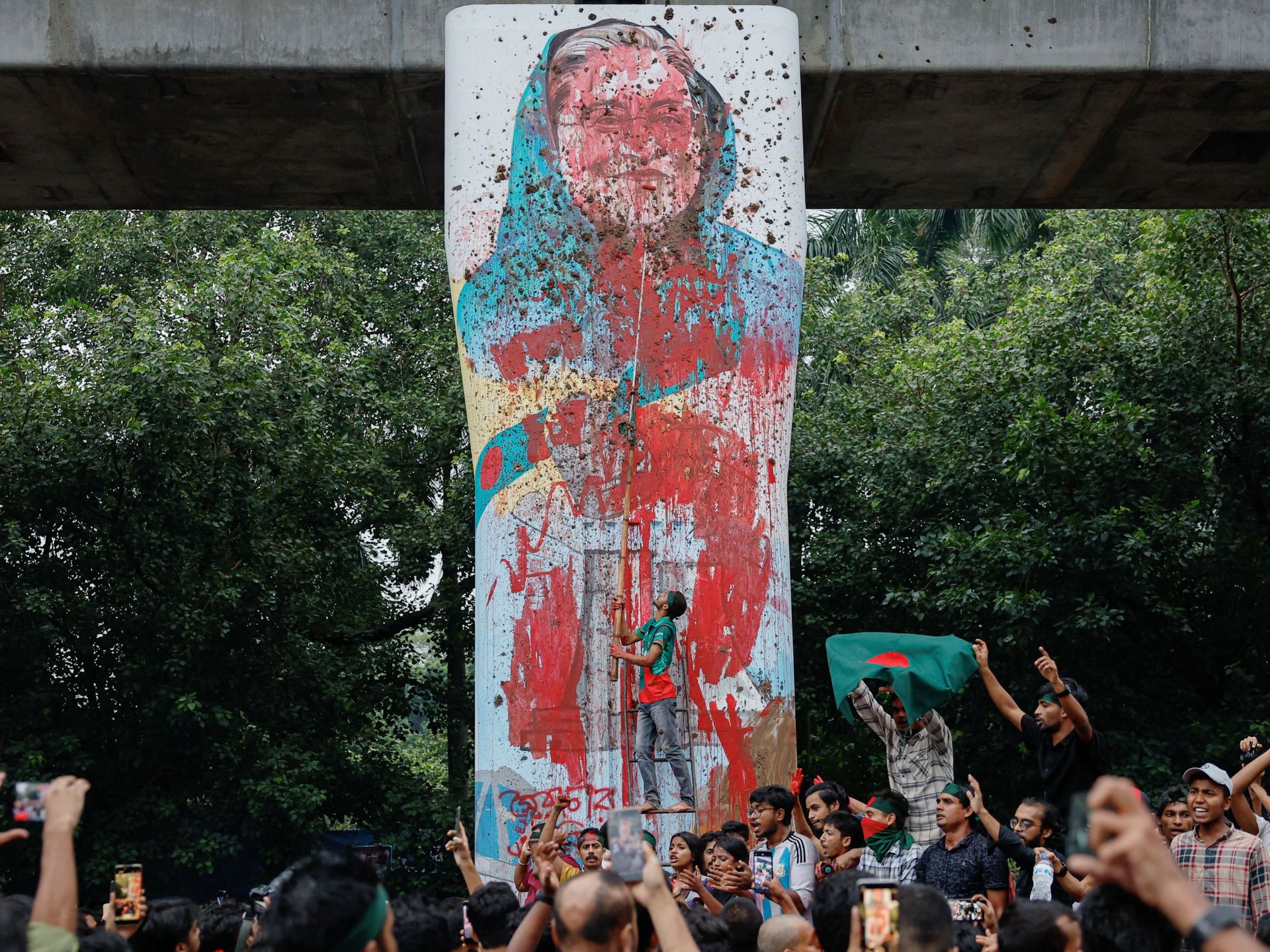 وقُتل أكثر من 450 شخصا، العديد منهم بنيران الشرطة، خلال شهر من الاحتجاجات التي قادها الطلبة ضد حكم حسينة الذي استمر 15 عاما، قبل أن تستقيل وتفر إلى الهند في الخامس من أغسطس/آب الجاري.