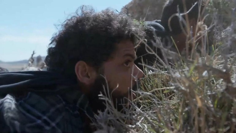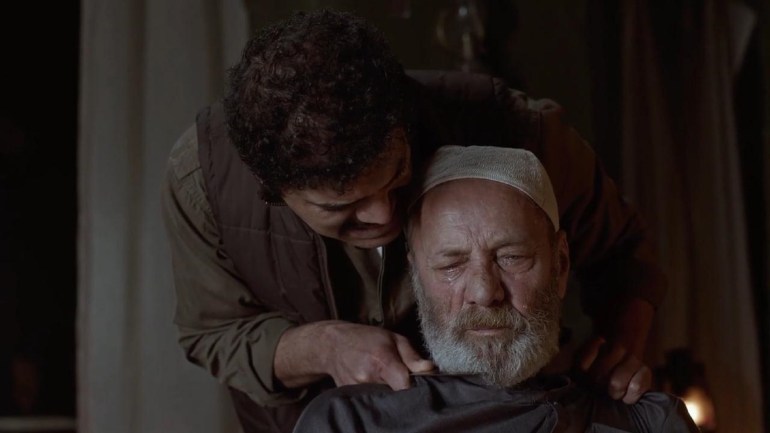 ففي هذا الحيز السردي، يحل أحمد ضيفا على رقعة الأحداث بعد تحرره من الأسر، فيصل إلى المخيم، وحين يباغت بما جرى يندفع نحو زيدان بغرض الانتقام، وهنا ينزع الفيلم هويته السينمائية مؤقتا ويتجه طواعية إلى فضاء التقاليد المسرحية، حيث اللجوء إلى الحوار المطول بين زيدان وأحمد.