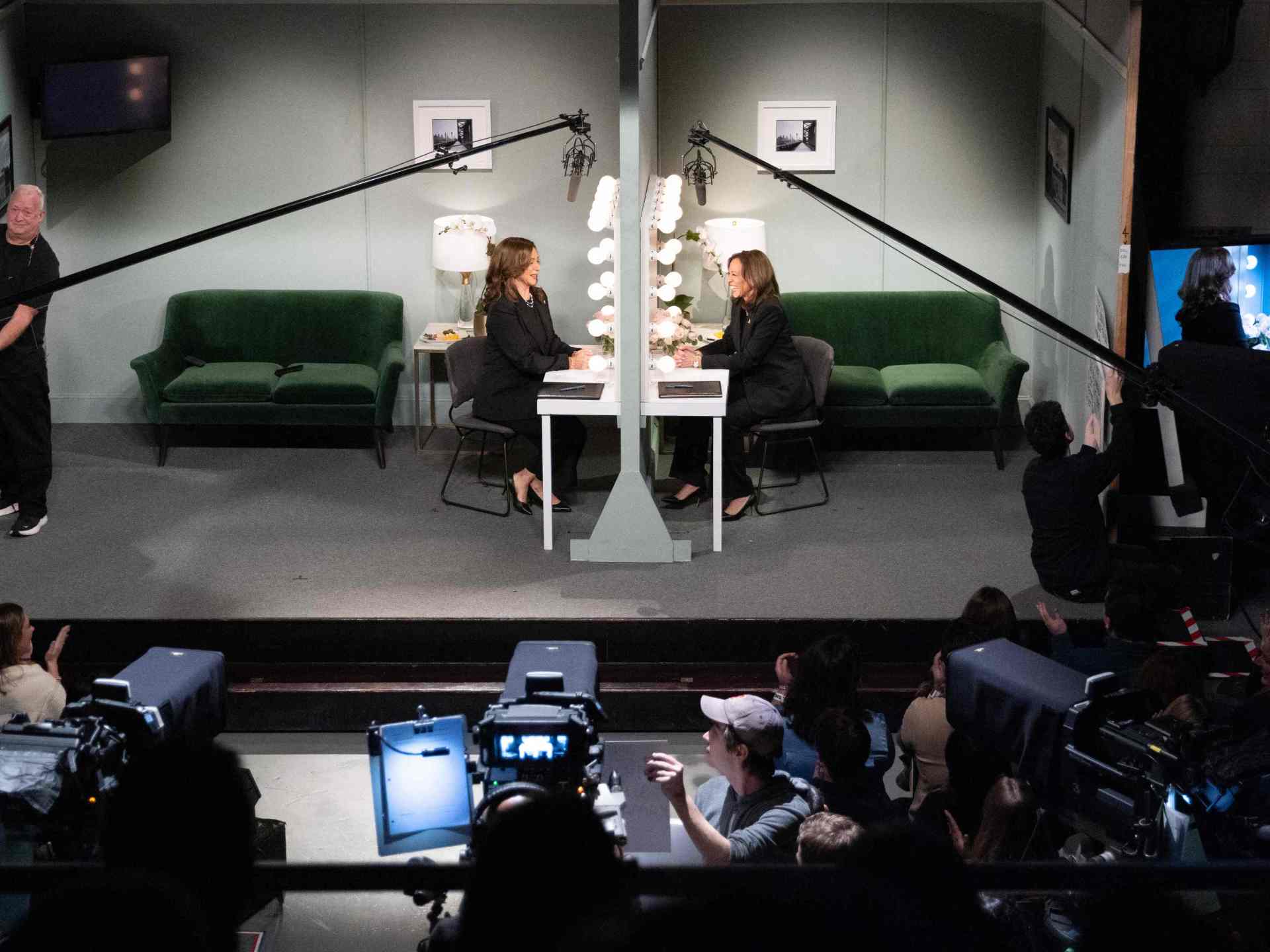 وكان من المقرر أن تتجه هاريس إلى ديترويت في ولاية ميشيغان بعد توقف في شارلوت بولاية كارولينا الشمالية ضمن حملتها الانتخابية، لكنها قررت فجأة وهي على متن طائرة “إير فورس تو” التوجه إلى نيويورك للظهور في البرنامج الكوميدي الشهير “ساترداي نايت لايف”.