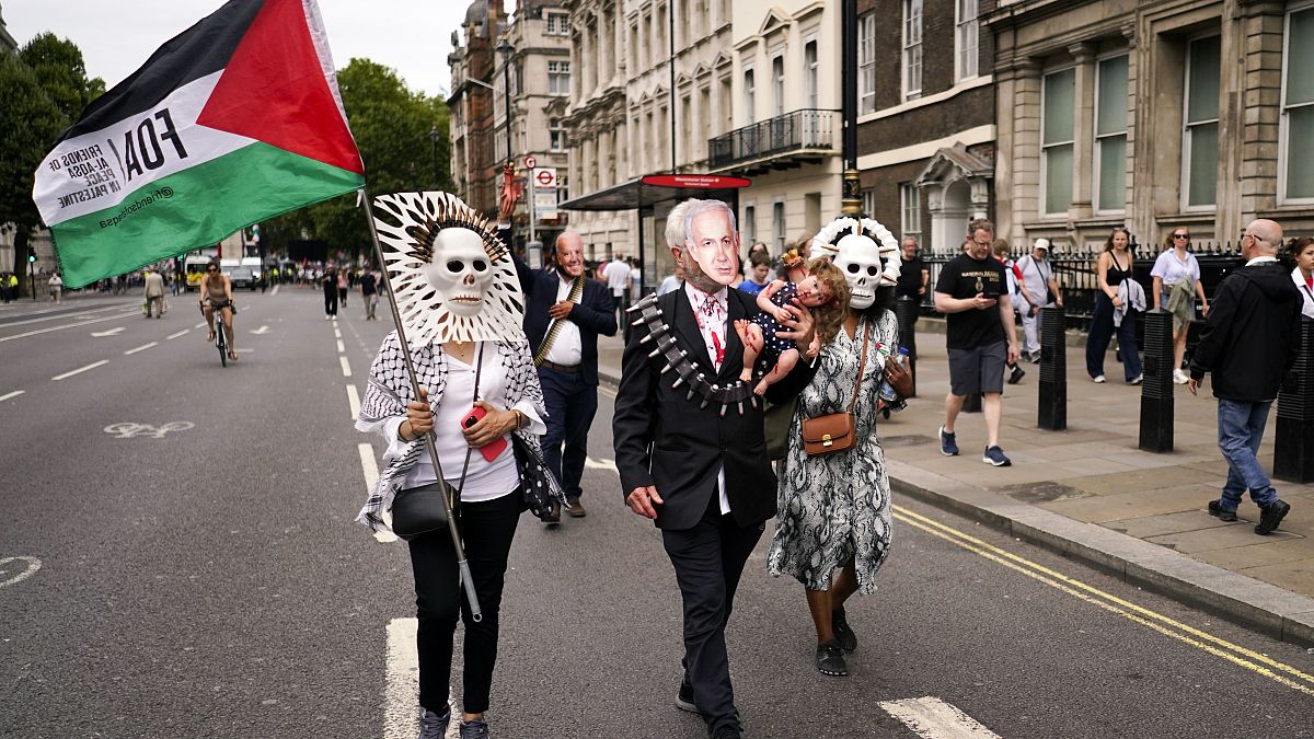 خرجت المسيرة في العاصمة البريطانية تلبية للنداء الذي طالب بالخروج في يوم الثالث من آب في مظاهرات لنصرة الشعب الفلسطيني.