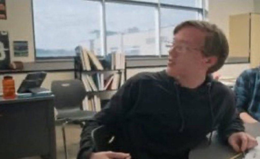 وظهر في الصورة الثانية وهو يرفع إبهامه بينما يلتقط زميل آخر – تم حذف وجهه – صورة «سيلفي» في حافلة المدرسة.