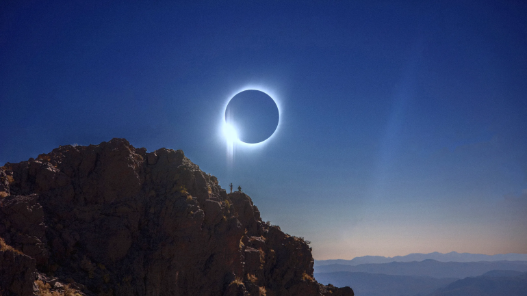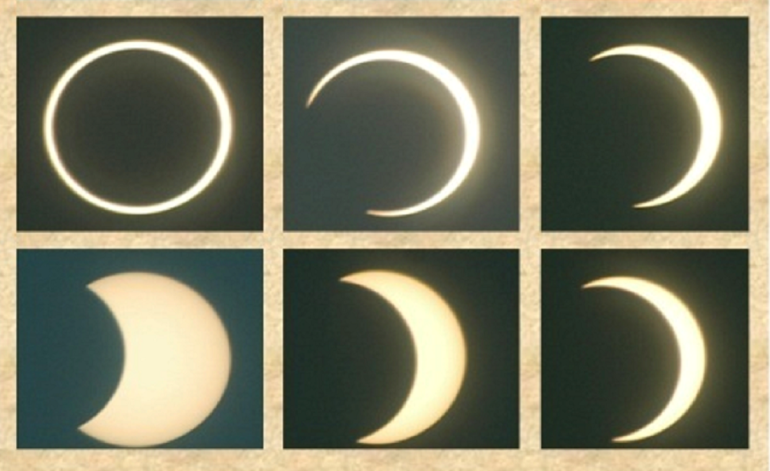ذلك أن أصل سبب الكسوف الكلي، هو أن قُطر قرص القمر أصغر من الشمس بـ400 مرة، لكنه في ذات الوقت أقرب إلينا منها بـ400 مرة، فتتساوى النسبتان، وبذلك يغطي قرص القمر الصغير الشمس العملاقة.