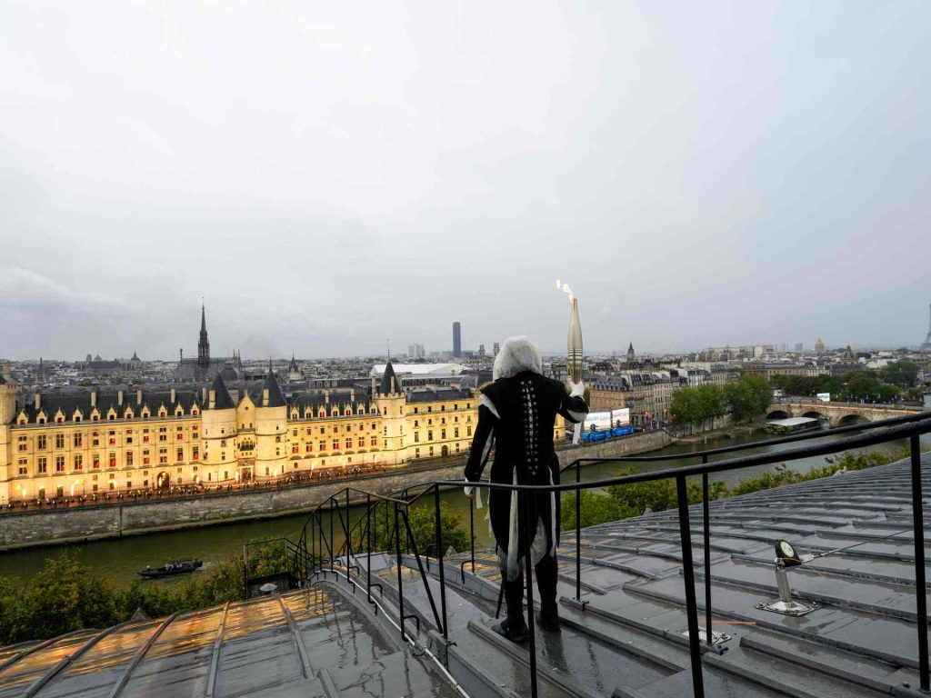 وبينما كانت وفود الرياضيين من جميع البلدان تستعرض على المراكب على نهر السين، إذ عبرت هذه الشخصية المقنعة والغامضة من أوسترليتز إلى برج إيفل وقفزت من سطح إلى سطح والشعلة الأولمبية في يدها، لتنسج خيطا بين المشاهد المختلفة التي اختارها المنظمون لرواية قصة التاريخ والثقافة الفرنسية.