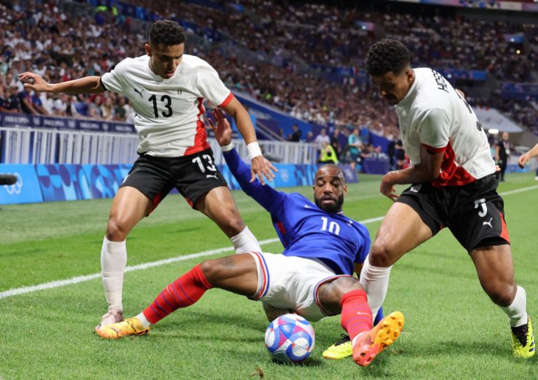 وفي المباراة الثانية، كانت مصر التي لعبت بـ10 لاعبين إثر طرد مدافعها عمر فايد (92)، سباقة إلى التسجيل عبر محمود صابر (62)، وردت فرنسا بثلاثية تناوب عليها جان-فيليب ماتيتا (83 و99) وميكايل أوليسيه (108).