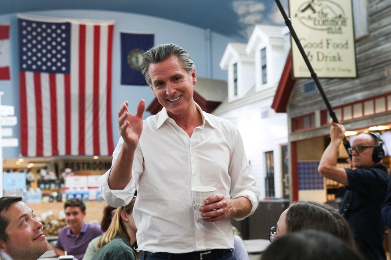 وارتفعت أسهم نيوسوم وبرز بعدما أصبح أحد أهم الوجوه الديمقراطية التي تقبل الظهور في وسائل الإعلام المحافظة القريبة من الحزب الجمهوري. وخاض نيوسوم قبل شهور مناظرة، غير رئاسية، ضد رون ديسنتيس حاكم ولاية فلوريدا استضافتها شبكة فوكس الإخبارية، واعتبرها المراقبون بروفة لانتخابات 2028.