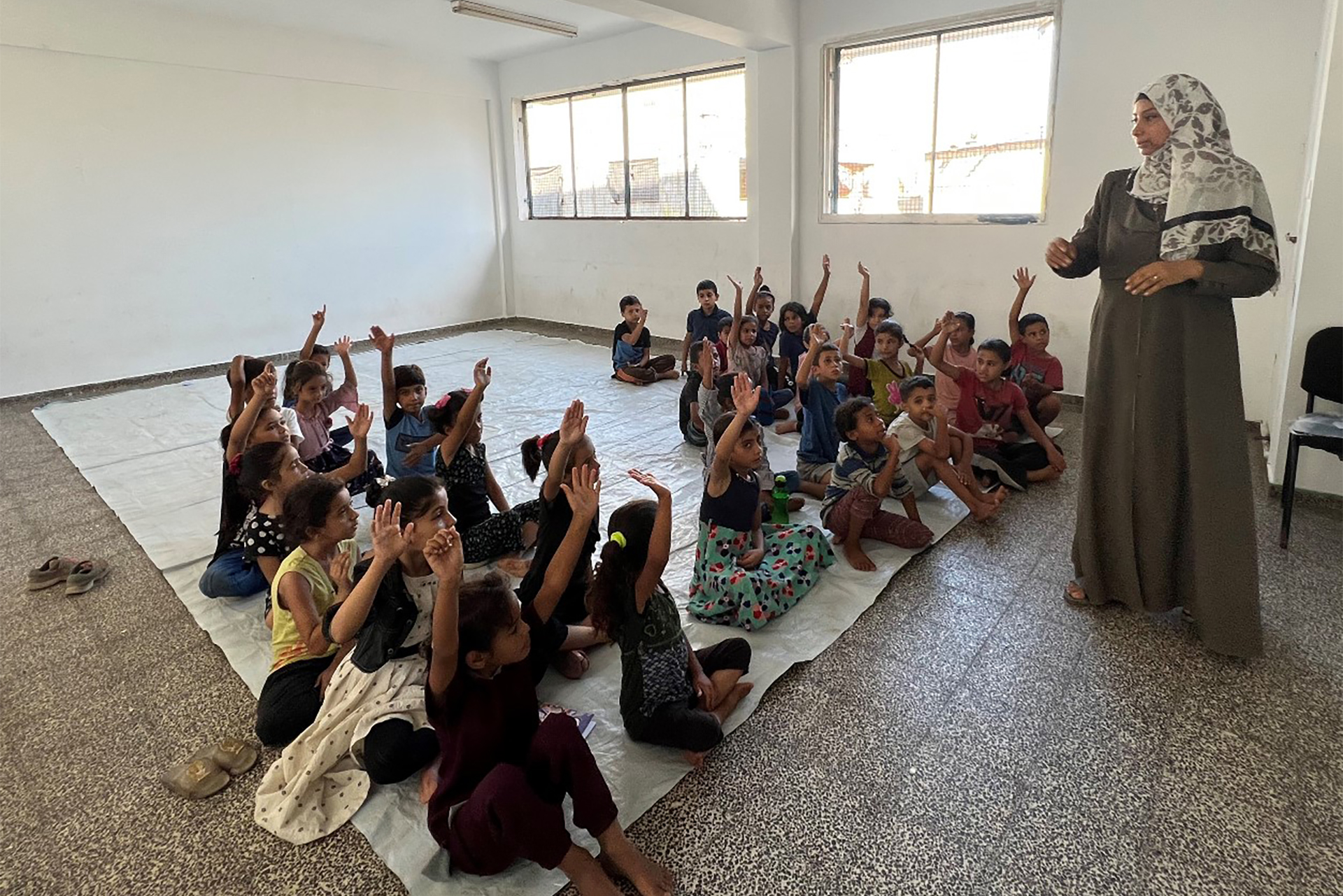 أما في مراكز الإيواء غير التابعة لوكالة الأونروا فسارعت جمعيات وأفراد إلى محاولة ملء الفراغ الذي خلّفه الانقطاع عن الدراسة، بإقامة مدارس صغيرة، ففي مركز إيواء “أميرة أبو سليم” جنوبي دير البلح أقامت جمعية الصحابة الخيرية مركزا تعليميا لتدريس الأطفال المقيمين فيه.