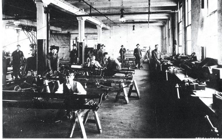 وكانت شركة “فورد” أيضا تصنع الجرارات التي أصبحت من المعدات الأساسية للمزارعين، والأفضل من ذلك، تركيب “هنري فورد” خطوط تجميع متنقلة في مصانعه. والحق أنه لم يخترع نموذج الإنتاج الضخم، ولكنه منذ عام 1913 كان قادرا على إدخال السلسلة المتحركة في صناعة السيارات، فبدلا من العمل في مجموعات حول الجسم والمحرك، يقوم كل عامل بجزء خاص من مهمة التصنيع، في حين يمر المنتج أمامهم بواسطة السلسلة المتحركة.