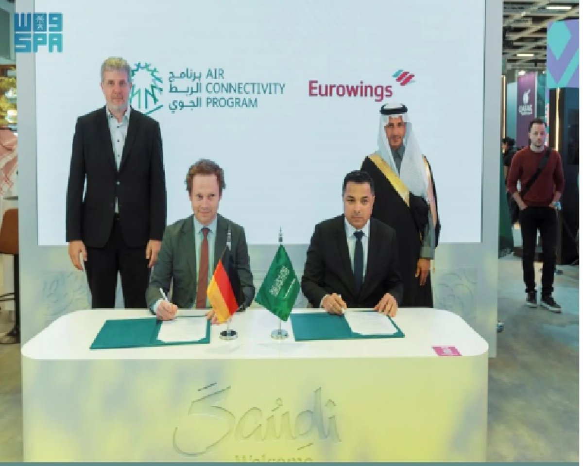وقّع برنامج الربط الجوي، على هامش مشاركة منظومة السياحة بالمعرض الدولي لصناع السياحة المقام بالعاصمة الألمانية برلين، اتفاقية تعاون مع خطوط “يورو وينغز” الألمانية، وذلك بحضور معالي وزير السياحة الأستاذ أحمد بن عقيل الخطيب.