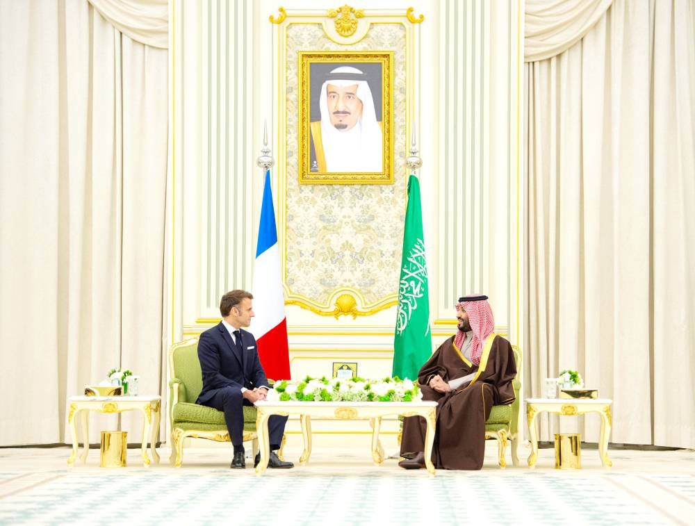 واستقبل الأمير محمد بن سلمان في قصر اليمامة في العاصمة الرياض الرئيس الفرنسي، الذي وصل إلى الرياض في زيارة (دولة) للمملكة العربية السعودية تستمر ثلاثة أيام، تتخللها مشاركته في قمة «المياه الواحدة».