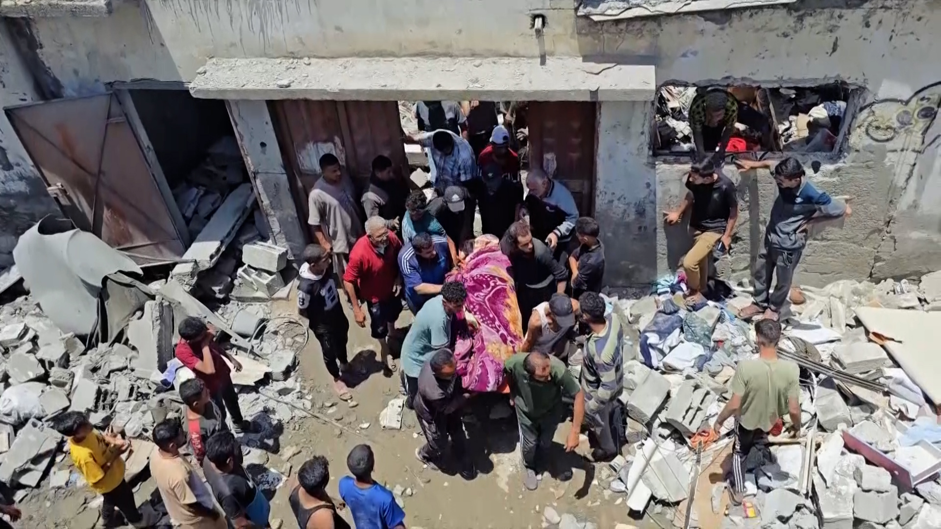 انتشلت فرق الدفاع المدني جثامين 6 شهداء من تحت أنقاض منزل من 3 طوابق في مخيم النصيرات (وسط قطاع غزة)، قصفته قوات الاحتلال الإسرائيلي التي صعّدت من تسوية البنايات السكنية على رؤوس ساكنيها.